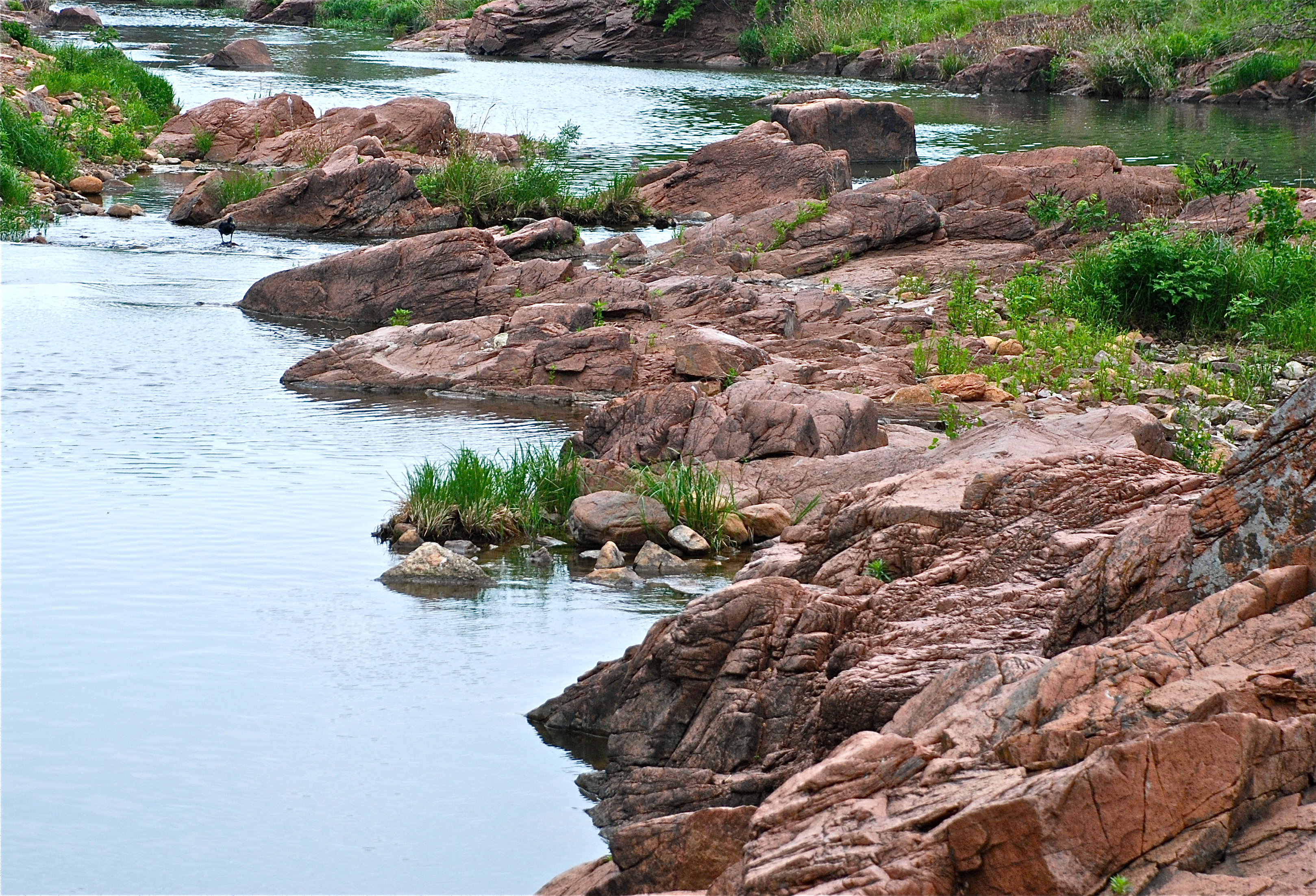 Sometimes one just has to go “where the wild things are” in order to have the senses put in order and life put in perspective. Such a place exists for me in southwestern Oklahoma’s Wichita Mountains. These mountains began forming approximately 500 million years ago and are ranked among the oldest ranges on earth. However, down through the ages climactic forces have chiseled and sculpted them until “all that remain now of once lofty escarpments are weather-reduced knobs and domes.” Even so one can’t help but stand in awe of what remains as well as the forces it took to thrust, in some cases, amazingly huge pieces of granite upward from the bowels of earth. In addition, amid the beauty of those remaining “knobs and domes” are 13 artificial lakes and a 59,020 acre refuge which “hosts a rare piece of the past–a remnant mixed-grass prairie that escaped destruction because the rocks underfoot defeated the plow.” The “refuge provides habitat for large native grazing animals such as American bison, Rocky Mountain elk, and white-tailed deer who were all once in danger of extinction. Texas longhorn cattle also share the Refuge rangelands as a cultural and historical legacy species. In addition more than 50 mammal, 240 bird, 64 reptile and amphibian, 36 fish, and 806 plant species thrive on the refuge.” So it is that in this piece of Creation, relatively untamed since the beginning of time, I find more than enough wildness to hear the voice of God murmuring among the profusion of rocks, speaking softly over the flowing waters, and whispering across the waving prairie grasses.