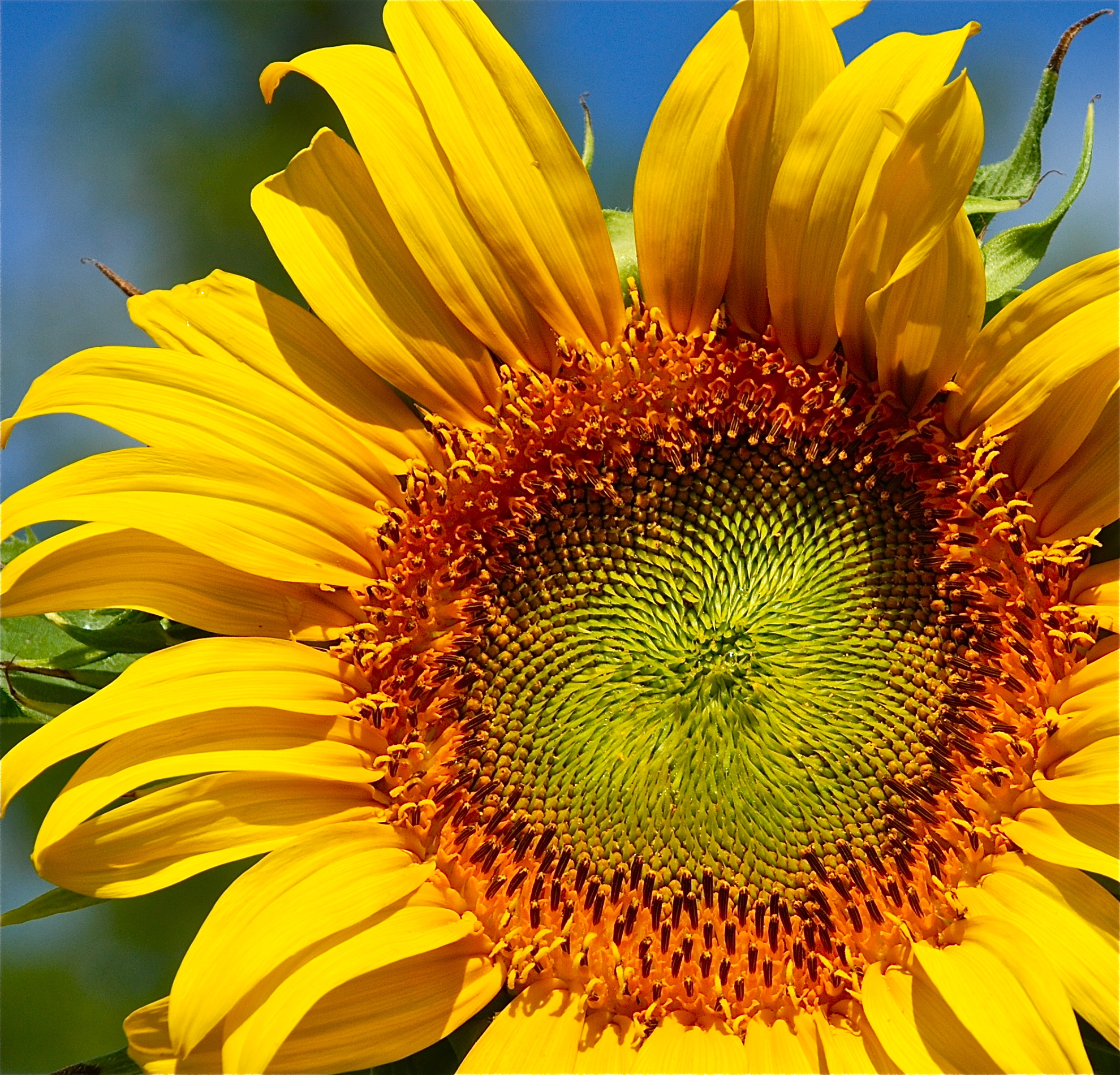 It would have taken no more than the first few words of Mary Oliver’s poem for me to want to join her in that field of sunflowers. I would go anywhere sunflowers grow, for surely the flowery “soldiers” as Paine calls them, as well as the flocks of wandering “beasties” that visit them, have adventurous tales to tell those who thirst for nature’s narratives. The voiceless worshippers waiting for weeks at dawn’s opening gate know well the demon and angel of drought and rain, the hungry adoration of visiting pollinators, the bearer of blessed light and sometimes searing heat, the sparkling orbs of cooling darkness. Even in their day’s of perishing they die not in silence nor in sadness for the rows and rows of seeds they bear guarantee new tales of other admirers, other dawns, and other sunsets. Dressed in simple garments of broad, green leaves and rising from coarse roots often sunk into poor soils, the sunflower, modest follower of the sun’s journey across the heavens, offers up a golden face covered in sticky, appetizing sugars. During the course of the day the bold sun worshiper blooms out large and tall while looking directly into the blazing sun, and with a radiant face poised against heaven’s blue the beauteous flower spreads a fanciful feast for birds, butterflies, and bees. Moreover, in that same sugary stickiness is a honeyed holiness, a potent, calming elixir for the human worshiper in the taxed, heat-beleaguered world beneath.