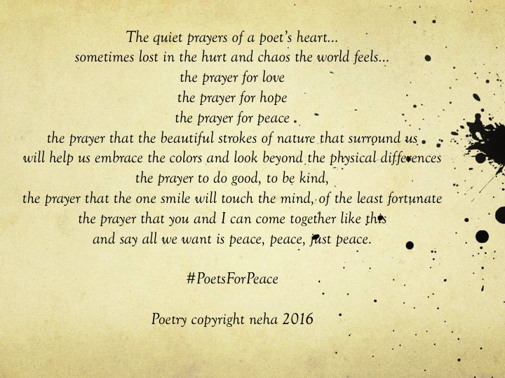 This is my contribution to the collaboration #PoetsforPeace, initiated by M. Zane McClellan and hosted here on forgottenmeadows.