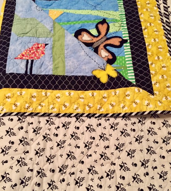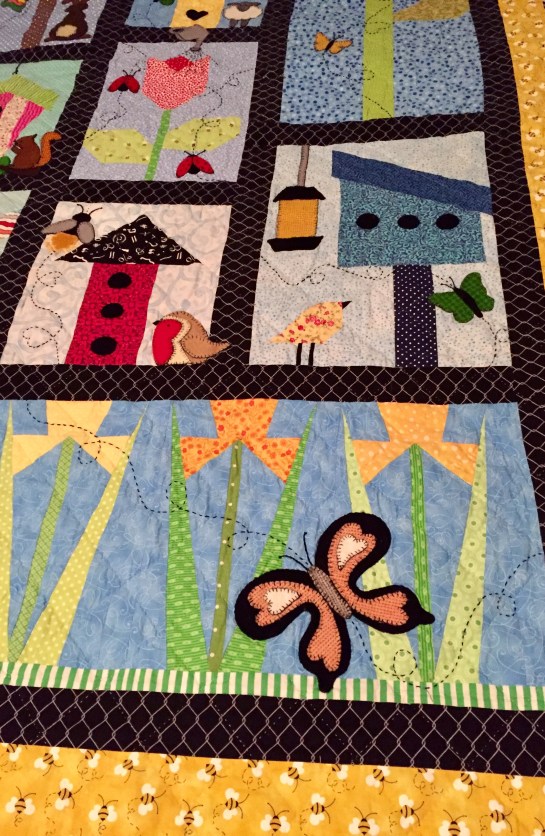 **Natalie and her sister are still a quiltin’! These are views of the same quilt you see at the end but I wanted you to be able to see all the wool appliqué I did on this one. And the last photo shows what kind of backing we finished it with.