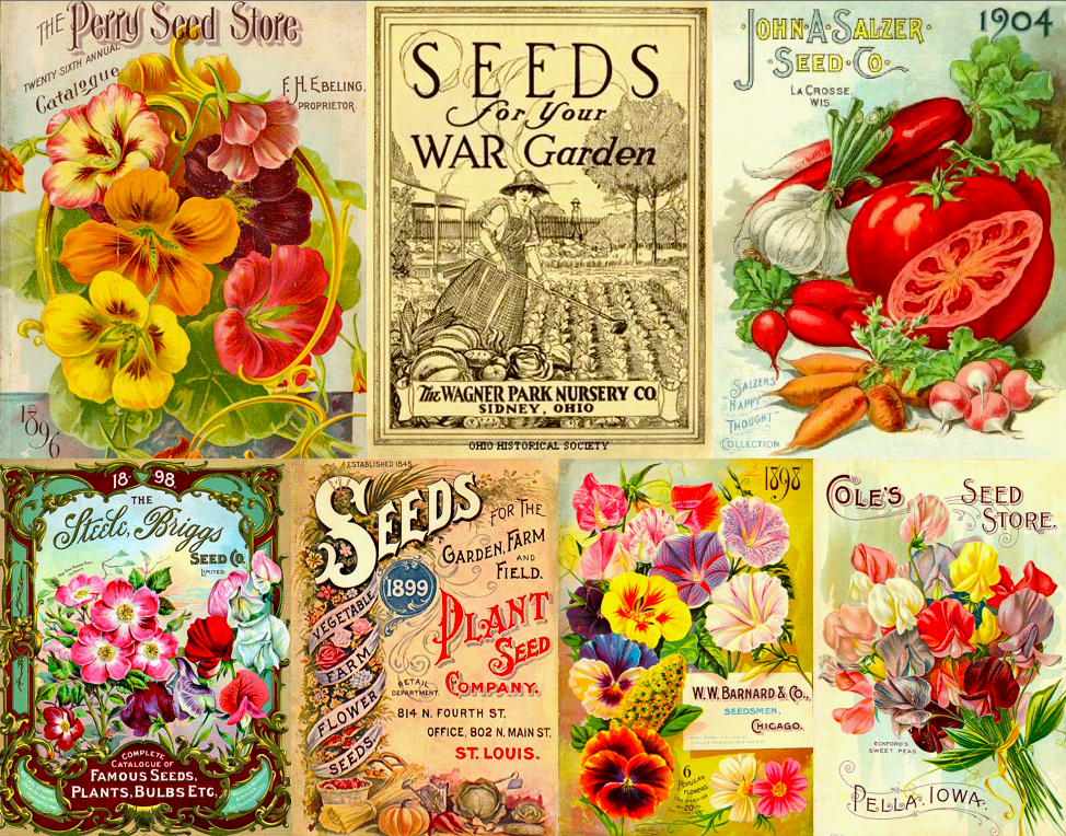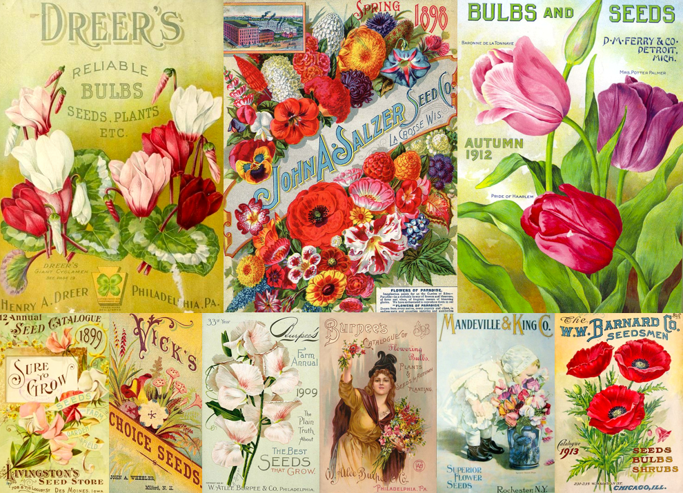 **Images of vintage seed catalogs via Pinterest; collages of them created by Natalie