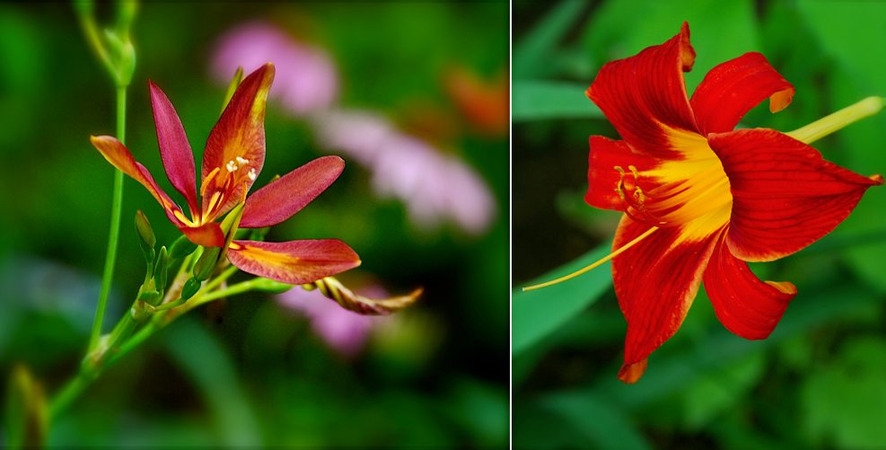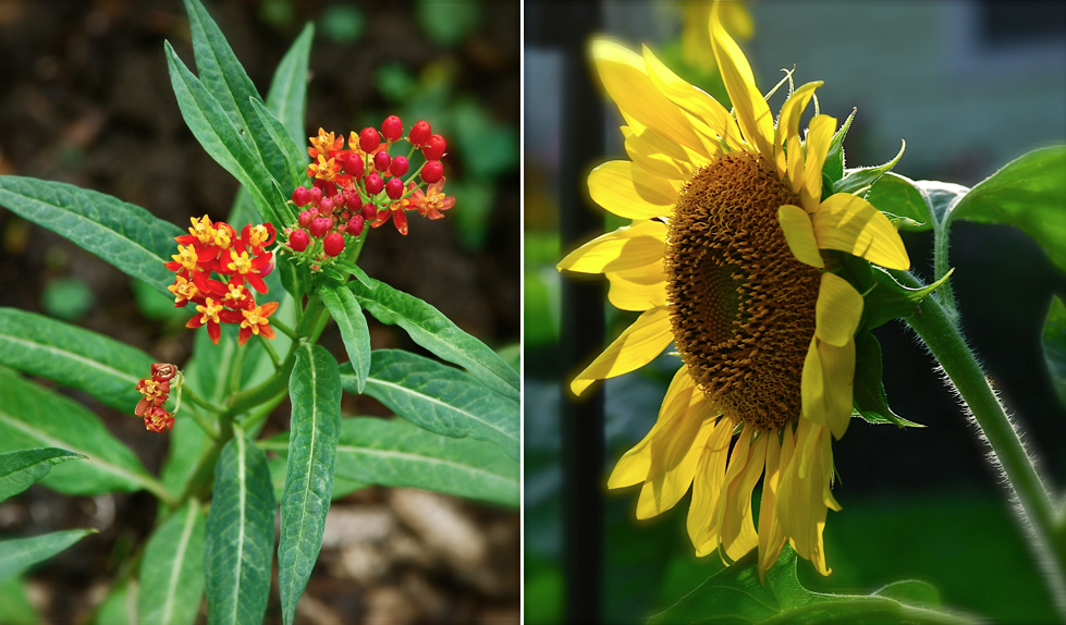 I have a recliner opposite my patio doors, and the doors are wide enough to afford a great view of a sizable portion of our yard and its flower beds. When I first get up in the morning, I enjoy sitting for a while in my chair watching the sun come up and the birds begin their daily activities. In the top photo above you can see a portion of a patio chair, part of the flower bed near the patio, part of another flower bed by Natalieworld, and about a third of the island bed that’s between me and the back fence. It was started decades ago before the removal of a large stand of bamboo that was behind it and the subsequent development of a new flower bed that now runs along the fence. Thus that back bed has become a sort of secret garden since you can’t see much of it until you walk around the island bed along the path near my neighbor’s fence on the north or the path that runs along the north side of the greenhouse. So it’s always fun to see what I’ll find when I finally get up and out to go look for what’s new back there on any given day. That back bed, anchored by a purple red bud tree that I’ve watched come up from a volunteer seedling, is where I threw out lots and lots of different kinds of seeds last fall. As spring advanced first came the poppies, the larkspur, the cornflowers, and the ragged ladies, and now the coneflowers, monarda, hollyhock, allium, daylilies, and a few sunflowers are blooming there currently. Also I have several kinds of vines beginning to climb on the chain link fence back there, and so soon I’ll have a host of morning glories, moonflowers, and coral vine flowers. So it is that a garden is more of a moveable feast than a static thing and when people ask what I have growing, it really depends on the week or the month. And I think that’s what I love most about it. But then there are the transitional times when not too much of anything at all is blooming.