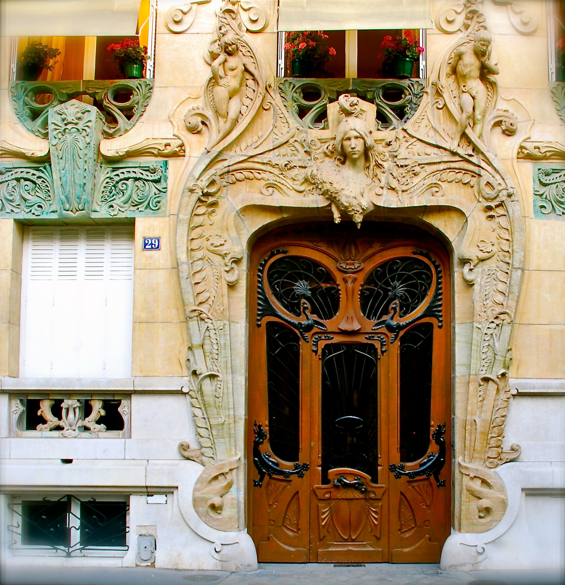 Doors are always intriguing, don’t you think?!  Our hotel in Paris was at 8 Avenue Rapp in the 7th arrondissement, and we frequently walked past the Art Nouveau Door above at 29 Avenue Rapp, on the way to the Eiffel Tower or to find some place to eat dinner. The beautiful door was built in 1901 by Jules Lavirotte, and I believe it to be the entrance to apartments or town homes. And oh, mais oui, oui, oui, how I would love to live in those surroundings and behind that beautiful door.