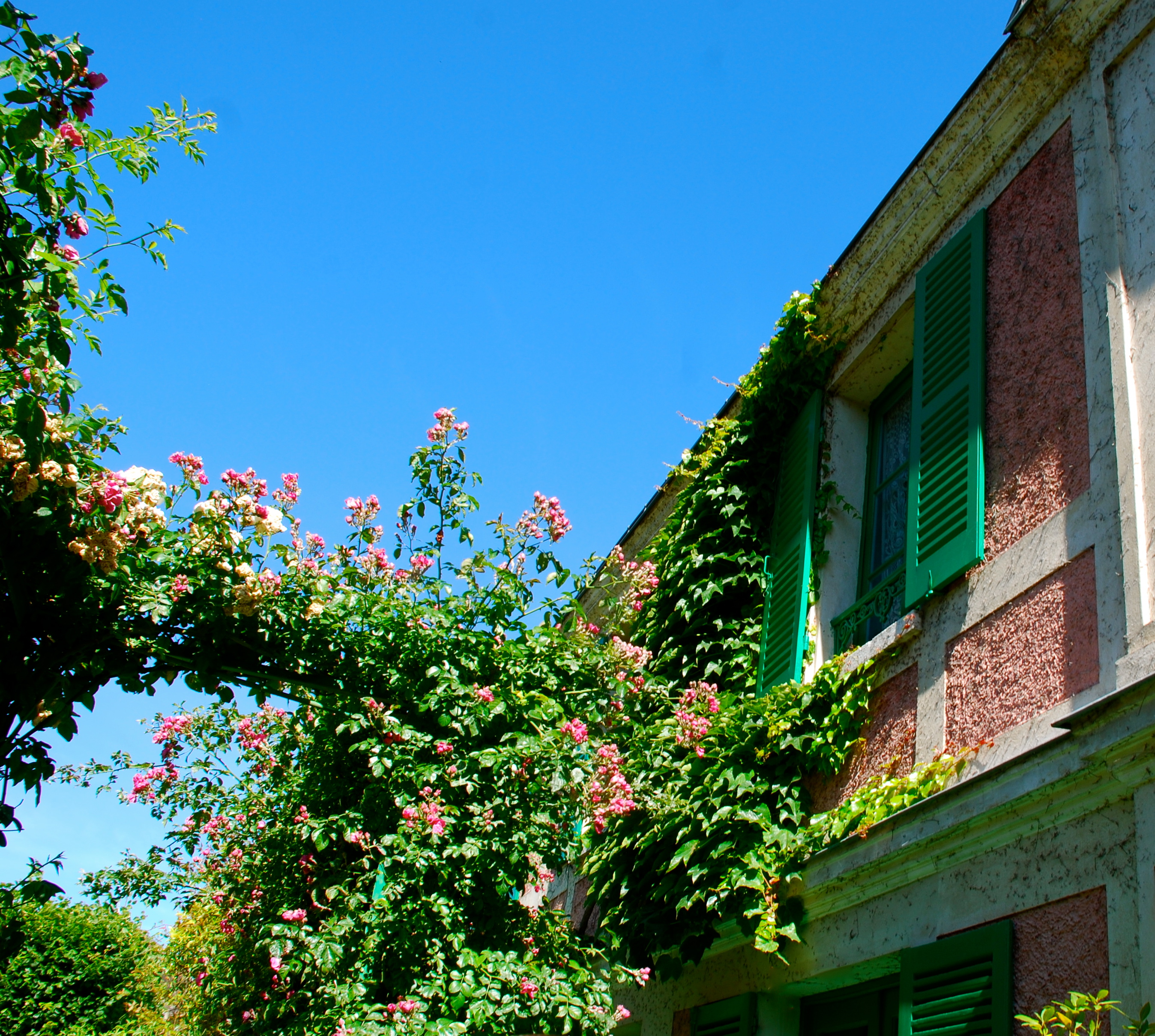 My favorite artist has always been Claude Monet who was the founder of French Impressionist painting. And so while we were in Paris, we took a bus tour to Giverny where in 1890 the artist  bought a house and land. Later he added a greenhouse and a second studio. The artist remained the architect of his massive gardens at Giverny even after he hired seven gardeners to whom he wrote daily instructions, precise designs and layouts for the plantings, and invoices for his floral purchases. Then in 1893, he purchased additional land with a water meadow and began a vast landscaping project which included lily ponds and a Japanese bridge, subjects of his best known works. Although, I expected his gardens to be gorgeous, that doesn’t even begin to describe what could well have been a model of the original Garden of Eden or what Heaven might look like. So over the next few days, I want to share with you some of the things I saw that day. Enjoy!