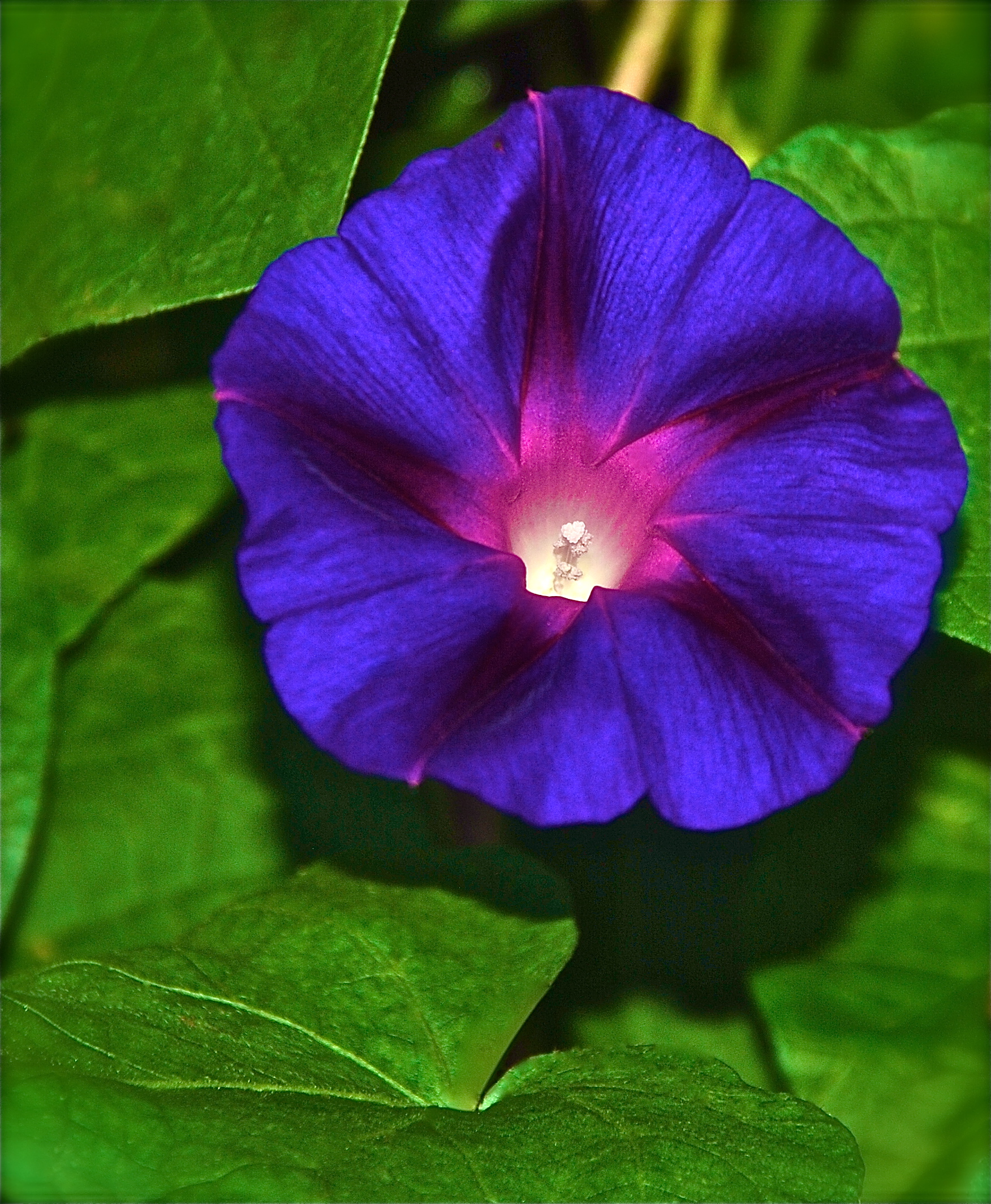 While a sparkly pink sat mid-throat in a deep blue morning glory