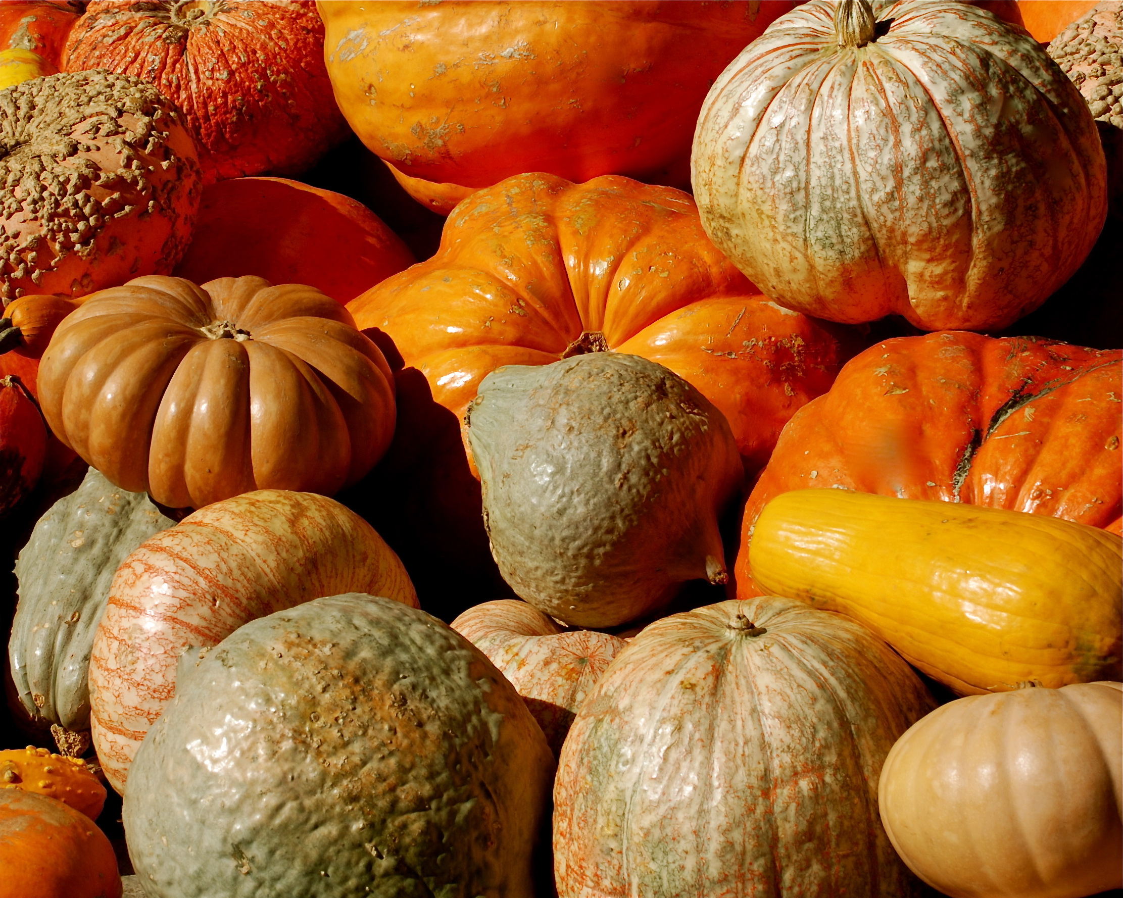 While the summer sun reigned high in the heavens, the trailing vines of Cucurbita inched along the ground.  Its flowers were pollinated, and then its fruits began to grow.  Tendrils on the vines helped anchor the rambler and protect them from the wind.  The leaves of the vines absorbed energy from the sun to spur the growth of the fruits, and the stems worked like umbilical cords to bring nutrients to the fruits while the thin and shiny outer layer of the fruits protected them from insects and disease.  As summer wound down, the ripening gourds began turning a spectacular color of orange, at least the traditional ones.  Then after the autumnal equinox, north winds venturing out of their haunts moved southward.  Along the way they gathered a fair measure of clouds; rain from the clouds greened the landscape; days became noticeably shorter; temperatures dropped below previous three digit highs; skies regained deeper hues; dawns became chillier; and the inimitable pumpkin, having been nipped off its vine, appeared on roadside stands and in grocery stores.  How I love Octobers and the whole autumn experience; hardly a day goes by that I don’t turn my eyes upward in praise, drop to my knees in thanksgiving, and wish I could throw my arms in adoration around  the Lord of all Creation!