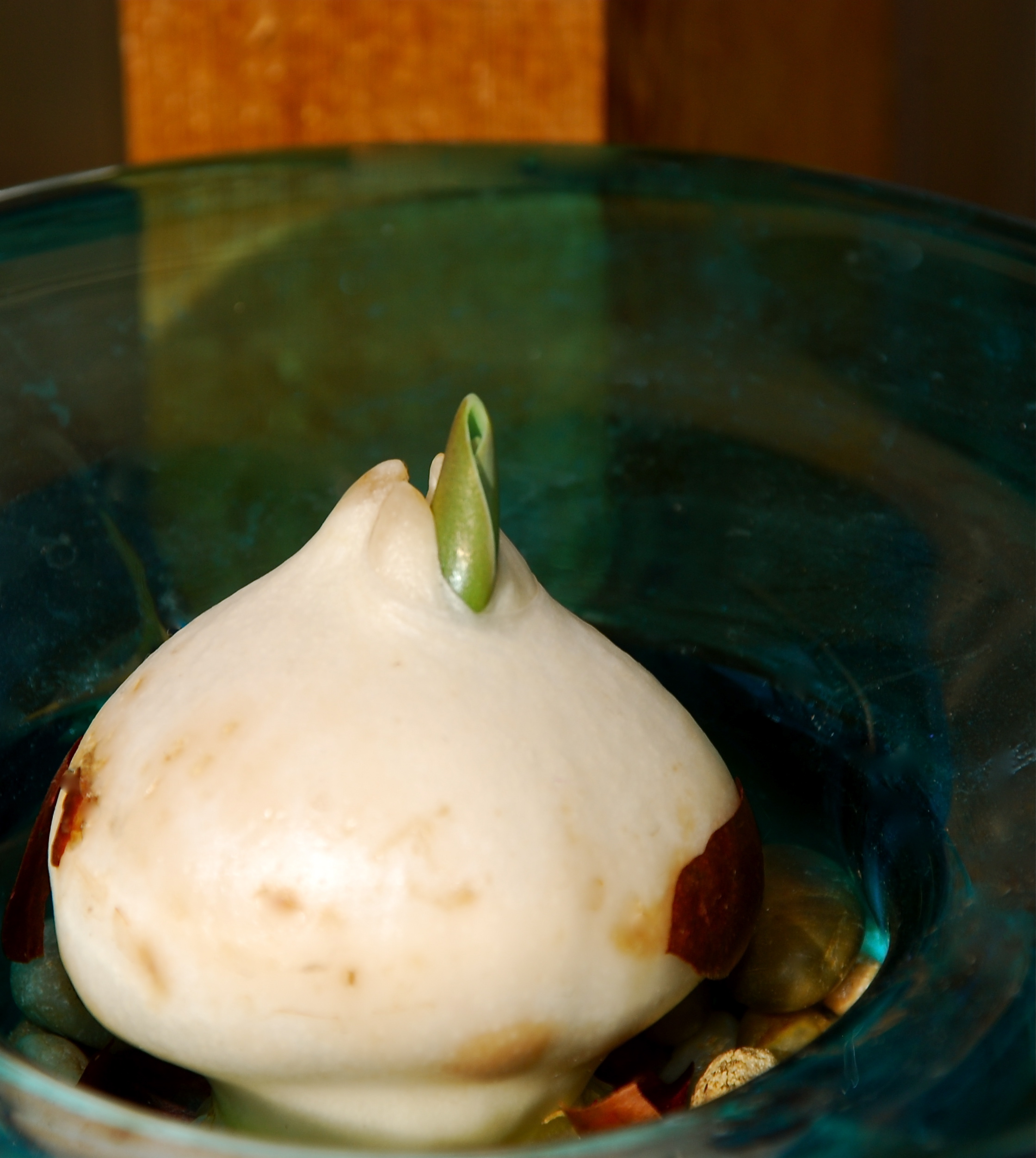 I’ve never had much luck with growing tulips in the ground. So this year I decided to try forcing them in containers. Two weeks ago after the bulbs had spent the required amount of time in my refrigerator, I planted some in soil and some in glass containers partially filled with pebbles and water. As of today I’m proud to report that I have tulips sprouting in both types of containers. Though it be only the 12th of January, springtime has sprung at least in my greenhouse. One of the most seductive things in life I know is the thrill of the first spark of life in a garden. Every time I experience it I feel as if a time machine has transported me back to Eden on the third day when creation was “born of the Spirit in the womb of the universe.” On that day the first seeds were planted in the earth and their roots reached down for the waters that would sustain them. Then and now such as this is clearly a manifestation of the goodness of God.