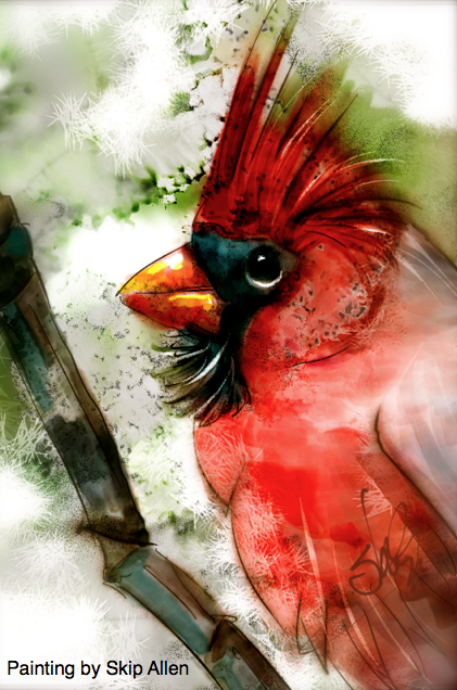 At daybreak yesterday winter’s customary leaden skies spread out in brilliant, China blues, and the cold, cold January day issued forth golden streaks of sunlight that ran across the wheat-colored lawn. Blanketed in warmth inside, I sat for some time enjoying an untroubled spectacle and watching the birds fly back and forth from feeders to their sheltering places.  But soon the serenity of the scene was threatened by four feral cats who moved in, crouched down, and inched along the ground in hopes of securing a tasty “catch” for the day. However, as luck would have it, one of the birds spied the predators, sounded the alarm, and off they all flew. When the cats tired of waiting, they wandered off, and the birds returned to their feeding frenzy. Eventually I spotted the one for whom I’d been waiting; he, a bright red cardinal, zoomed in and perched momentarily atop the feeder pole, a throne not wholly unbefitting his majesty. As I lingered watching his bright red flashes flit about here, there, and everywhere, I realized that last night’s blustery north wind had ceased, and now only sporadic zephyrs were ruffling the bamboo’s leaves. And so it was that a splendid morn had unfolded and everything within my frame of vision had been steeped in a heavenly quietude, a “chirpy” kind of beauty, and a soothing calmness. What a healing balm tis such for one, wearied, crestfallen, and grappling with pain! The Lord, in His loving and mysterious ways, had tipped over my cup of despair and once more filled it to overflowing with His loving grace. O Eden, how you yet issue benedictions that fill and thrill the children of your faithful, Master Gardener.