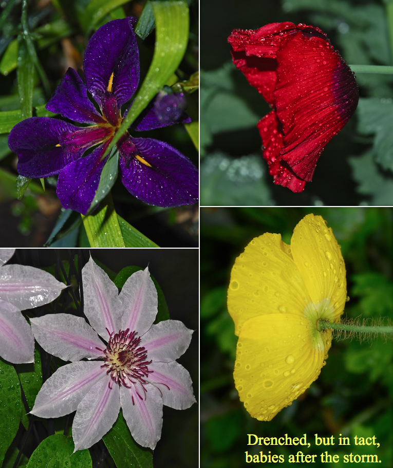 In the spring when we were actually getting rain, we also had several bouts of hail along with the showers. As a result this summer there have been little armies of roofers tap, tap, tapping their way all around town. Our roof too was recently replaced, and then two weeks later my new neighbor got her new roof put on. Shortly thereafter, Natalie, yes interestingly we share the same name, was out in her front yard when we pulled onto our driveway. When she saw us, she came running over to tell us about something funny that had happened while the workers were up on her roof. It seems that one of them was so taken with my yard and flowers that he was leaning over on his ladder to get a better view. But because his view was blocked by a large tree, he had to lean way over on his ladder to get a good look at it. And then boom, he finally had leaned a tad too far over and tumbling down came he and his ladder. Fortunately, other than his pride, the guy wasn’t hurt so we felt no remorse about having a really good laugh about the incident. Then Natalie went on to tell us another funny story about her mom who is so envious of my yard that she’s been trying to get glimpses of it through the slats in her privacy fence. And it also seems that she’s seen enough to jokingly ask Natalie if she thought I’d notice if she sneaked over and dug up a few things. Of course I was very flattered and pleased that others enjoy my little piece of Eden as much as I do, but I don’t want them falling off ladders or having to peek through fences to see it. So I told Natalie, as I tell everyone, that people are always welcome to open the gate and come on in to look around, and that I’d be happy to share with her and her mom all the seeds that they might want. I also told her that I have chairs spread out around the yard for those who want to linger a while longer. Lastly and with tongue in cheek, I said that she and her mom were more than welcome to come in and dig up all the weeds they wanted.
